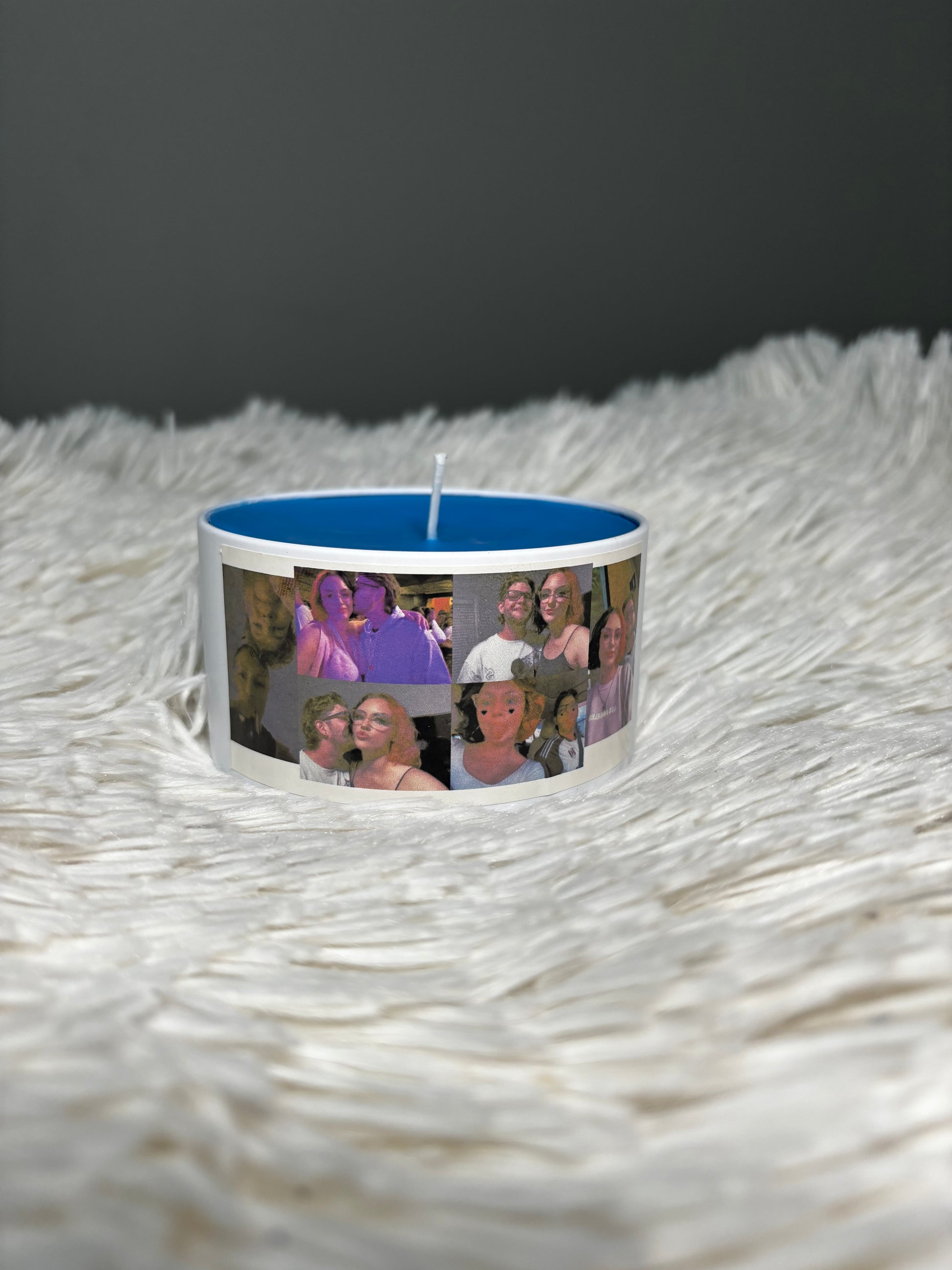 Enhance your space with our personalised candle, handcrafted with care. Each candle is uniquely designed with your choice of initials or a special message and photos of your favourite memories, making it a perfect gift for any occasion. Create a luxurious and personal ambiance with our premium candle.